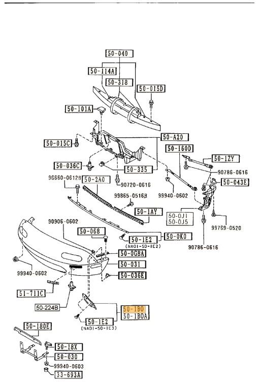 1990-1997 Mazda Miata - Bumper Cover Bracket - Mazda (NA01-50-1B0)