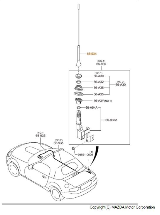2006-2015 Mazda MX-5 Miata Antenna Mast without Bluetooth - Mazda (NF47-66-A30A)