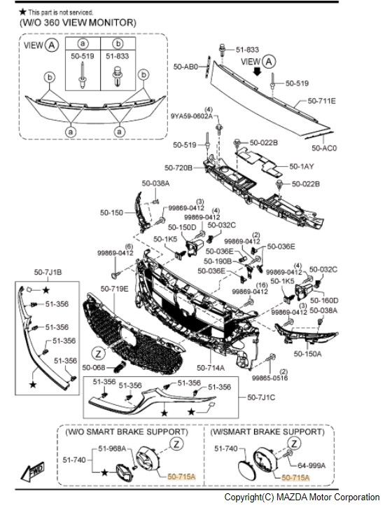 2018-2021 Mazda 6 Bracket Rad Grille - Mazda (GBVH-50-716)